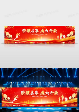 红色鎏金风格荣耀启幕开业舞台宣传展板开业舞台展板