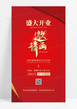 红色大气盛大开业邀请函诚邀您的到来邀请函手机海报通用模板