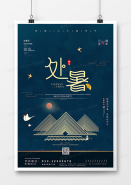 手绘中国风水墨画渔翁在湖面上钓鱼元素