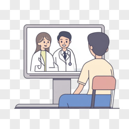插画一个人坐在屏幕前向屏幕里的医生咨询免抠元素
