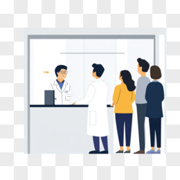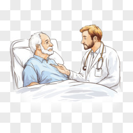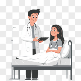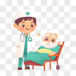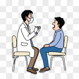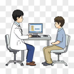 插画医生坐在桌子前给一个男孩看病看病免抠元素