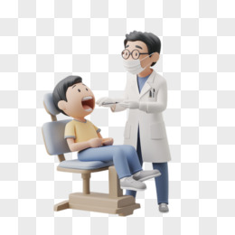 3D插画医生给坐着椅子上张大嘴的病人看病免抠元素