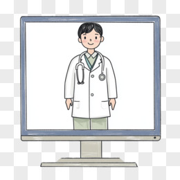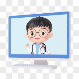 插画一个电脑屏幕里是穿白大褂的医生看病免抠元素