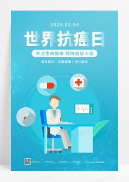 蓝色世界抗癌日宣传海报世界癌症日海报展板
