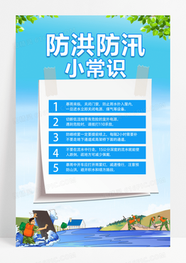 蓝色手绘风防洪防汛小常识抗洪防汛海报