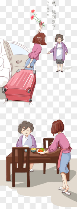 母亲节妈妈拿着一束康乃馨开心的笑免抠元素