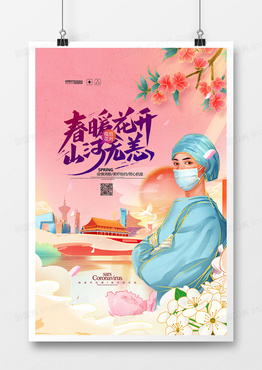 国潮插画风春暖花开山河无恙抗疫迎春海报