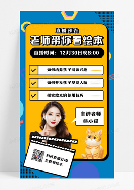 蓝色简约老师带你看绘本直播预告手机海报设计