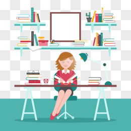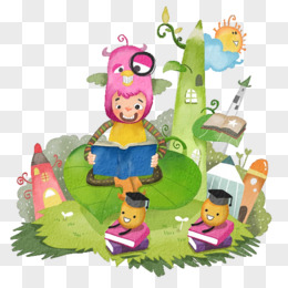 手绘卡通沉浸在知识的世界里场景素材