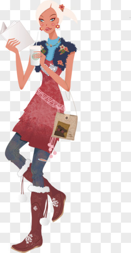手绘看书的时尚模特