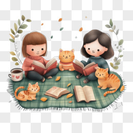 卡通手绘免抠坐在书上的小朋友免抠元素