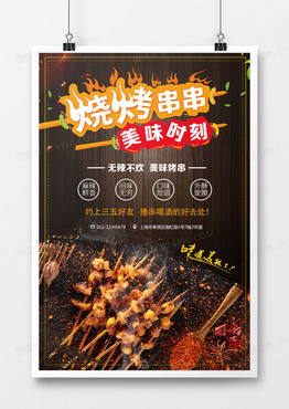 插画风格吃饭吃烤串撸串烧烤免抠元素