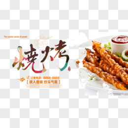 插画风格吃饭吃烤串撸串烧烤免抠元素