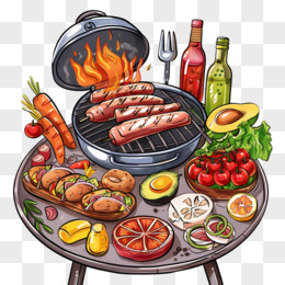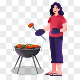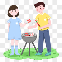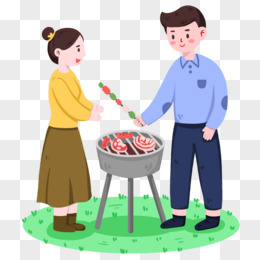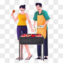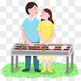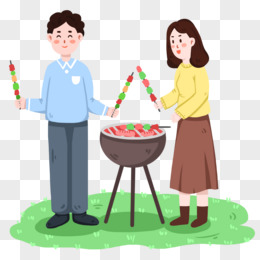 手绘恩爱情侣户外烧烤BBQ免抠素材
