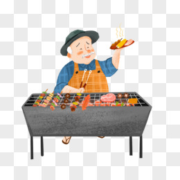 卡通手绘免抠爷爷烤烧烤元素