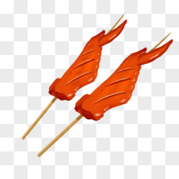 手绘两串烤虾免抠元素