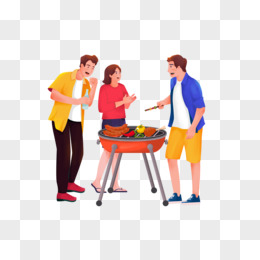 手绘三人烧烤免抠元素