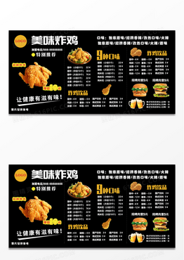大气黑色美味炸鸡烤鸡菜单美食快餐炸鸡展板