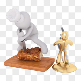 感恩节之手绘卡通男孩拿着餐具吃烤火鸡