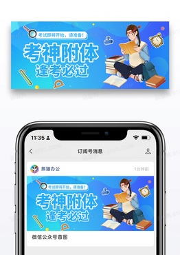 简约卡通考神附体微信公众号封面图片