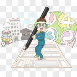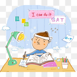 卡通手绘男孩奋笔疾书努力学习免抠元素