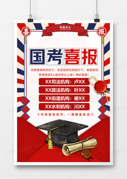 复古简约公务员考试国考喜报海报设计