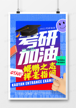 蓝色简约考研加油海报设计