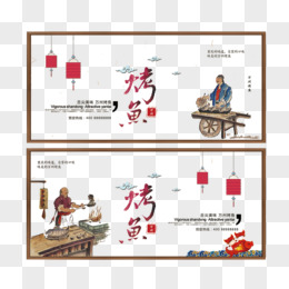 手绘烤鱼美食素材