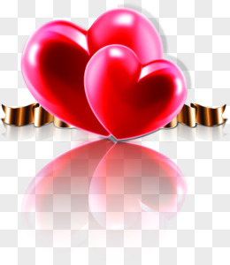 红色卡通爱心黄色彩带