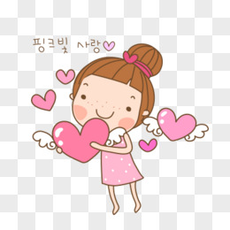 手绘抱着爱心的可爱女孩免抠元素