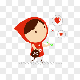 手绘抱着爱心的女孩免抠元素