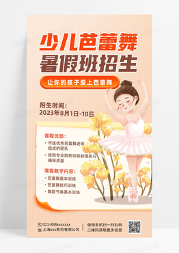 卡通芭蕾舞舞蹈班艺术班招生手机海报暑假