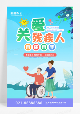 卡通手绘志愿者帮助老奶奶推轮椅场景元素