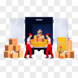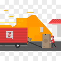 手绘卡通搬运货物场景素材