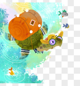 手绘海龟小鱼搬家