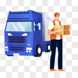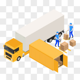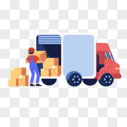 手绘卡通卡车与搬运工素材