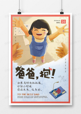 手绘卡通女儿拥抱妈妈插画免抠元素