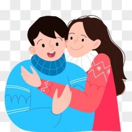 手绘卡通情侣浪漫拥抱插画免抠元素
