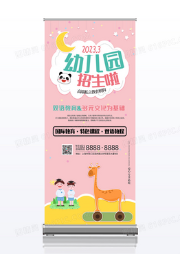卡通风长颈鹿边框童趣背景儿童幼儿园招生啦培训宣传易拉宝X展架