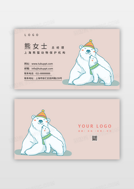 卡爱卡通温馨北极熊动物保护名片模板