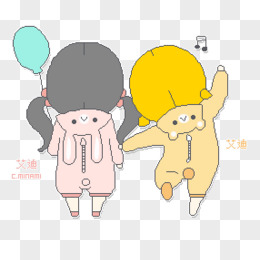 手绘卡通妈妈跟孩子背影插画免抠元素