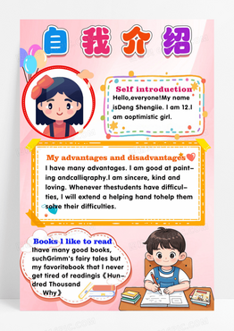 粉色卡通自我介绍英语自我介绍竖版卡通小报