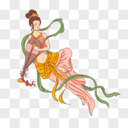 卡通手绘敦煌莫高窟飞天壁画免抠素材