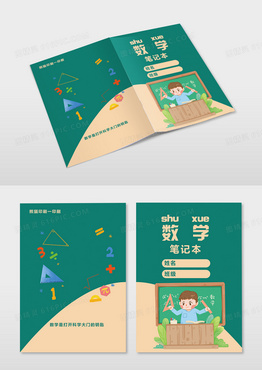 绿色简约卡通数学笔记本数学封面画册封面