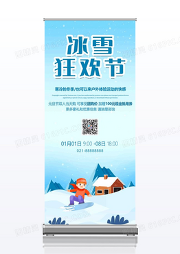 冬天冬季手绘卡通冰雪狂欢节宣传易拉宝