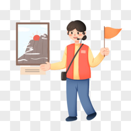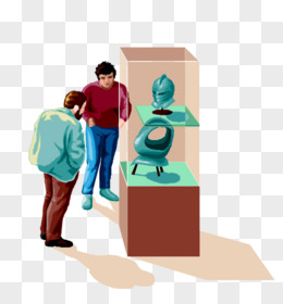 卡通手绘学生老师博物馆研学参观化石场景元素