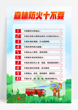 蓝色卡通森林防火十不要森林防火十不要文案海报设计