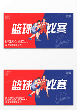 红蓝简约创意卡通篮球比赛魅力篮球炫彩无限篮球比赛展板