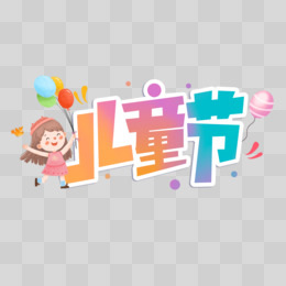 儿童节彩色卡通艺术字孩子儿童气球免扣元素