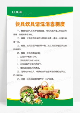 卡通绿色餐具炊具清洗消毒食堂制度海报